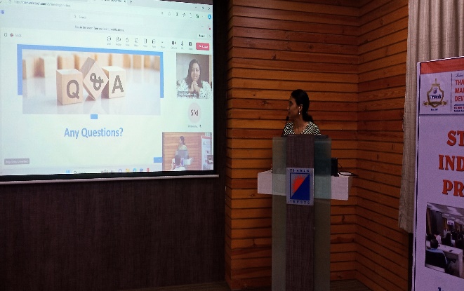 A webinar on “Emerging Technologies” was conducted by Ms. Swati Verma, Application Development Senior Analyst, Accenture Pvt. Ltd, TIMSCDR Alumnus Batch 2015 on 4 January 2022 during the Student Induction Program arranged for the 1st semester students. She guided the students about the latest technologies that are being used in the Industry. She also discussed with students the importance of soft skills and how it plays a crucial role in success of one’s professional life.