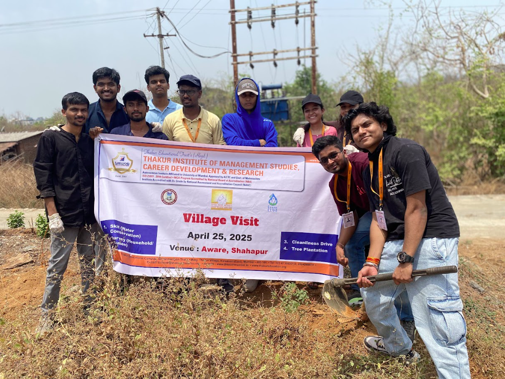 Thakur Institute of Management Studies, Career Development & Research (TIMSCDR) organized a one-day visit to Aware Village, Shahapur, Thane , on April 25 , 2025. A total of 10 students participated in the skit performance. The skit demonstrated the importance of water and spread awareness of soak pit building.The student performed the skit at 3 different places in the village including a school.
